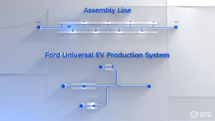 在生产效率上,福特团队创新性采用“树状工作流”替代了传统的线性流水生产线。该体系通过三条并行的装配线协同作业,最终完成整车装配,实现效率飞跃式提升。