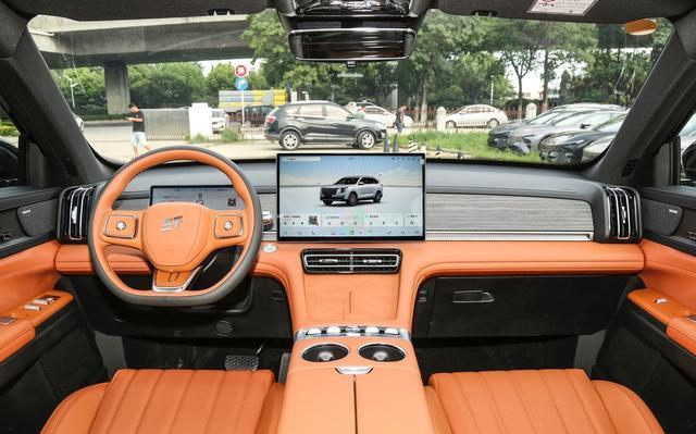 进入车内,黑橙/黑棕双色内饰方案适配不同年龄层,中控台"五岳"物理拨键以30°倾角提升操作便利性。15.6英寸向日葵屏支持语音控制偏转,搭载骁龙8155芯片与TOUR 3.0系统,四音区语音交互可实现"接孩子"等场景化指令联动。座椅新车有着五座与七座布局可选,并且还提供4种一键切换模式(居家大床/旅行小船等),七座版后备箱容积可从732L扩展至1708L。而二排双1米空间+131°靠背电动调节,三排支持电动进出;43处储物格设计实用性强。