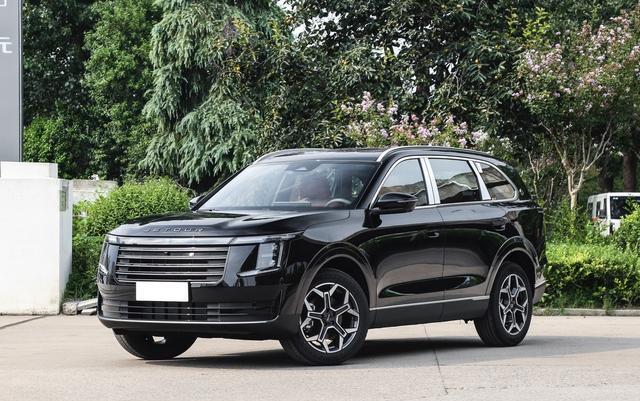 我们首先来看新车的外观设计方面,X70L前脸采用家族化"徽城翘楚"设计语言,通过横向镀铬格栅与贯穿式LED日行灯拉伸视觉宽度,整体与我们熟悉的路虎揽胜造型很相似,并且多边形进气格栅内置动态韵律饰条,配合"C"形矩阵灯组,在保留SUV硬朗气质的同时融入细节科技感。前包围的贯穿式进气口与银色护板设计,既优化空气动力学又强化运动属性。提供冰霜蓝、苍云青等四款自然灵感配色,满足不同审美偏好。